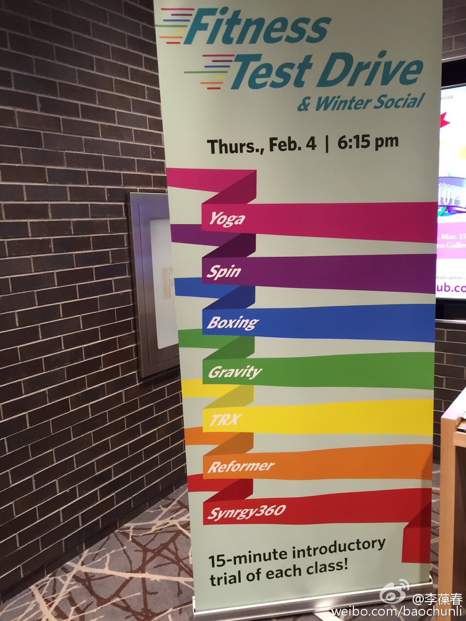 晚上参加了个Fitness Test Drive,别具一格。两小时连续进行七种不同的运动:TRX,Reformer,Synergy360,Yoga,Spin,Boxing和Gravity,好几种以前从来不知道是怎么玩儿的。Boxing最为给力:拳击、跳绳、实心球、Plank、俯卧撑等每分钟一种交替十五分钟,感觉比军训还生猛。练完酣畅淋漓,不虚此行。
