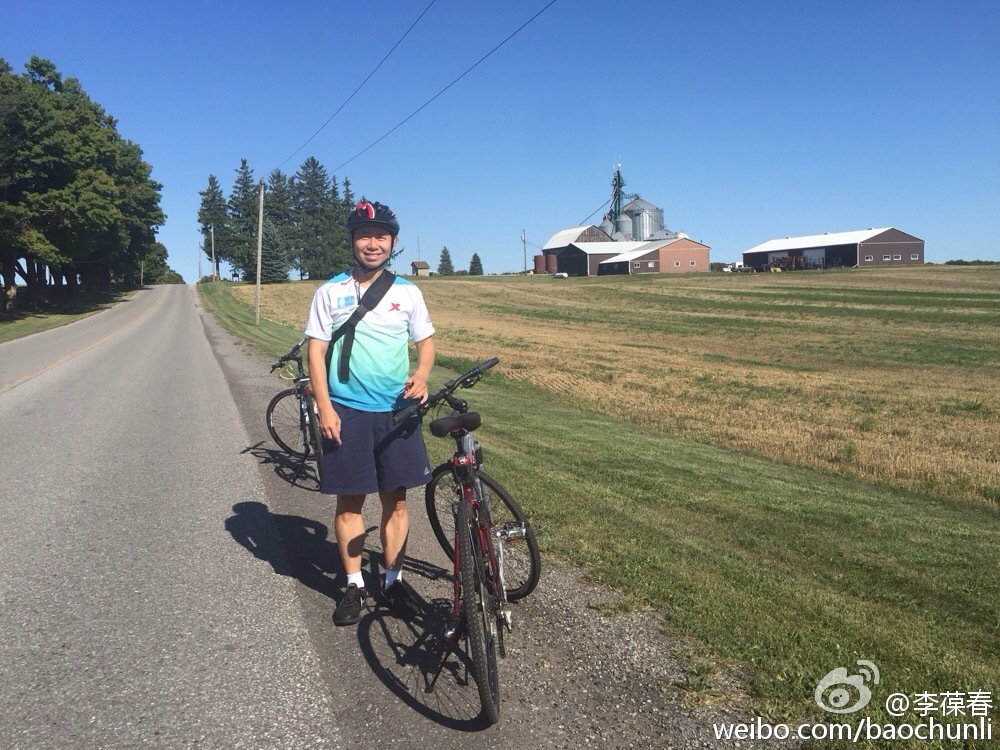 早六点30摄氏度,在香港九龙仔公园跑道跑完10公里飞多伦多。第二天22度,在北郊Uxbridge三小时骑车44公里。一边天气阴沉湿热,一边晴空万里,有种一半是火焰一半是海水的感觉。一路上大量上下坡,郭芳出了一题:全程匀速快,还是前半程速度快两公里后半程慢两公里快?简直是一场体力和智力的双重考验。