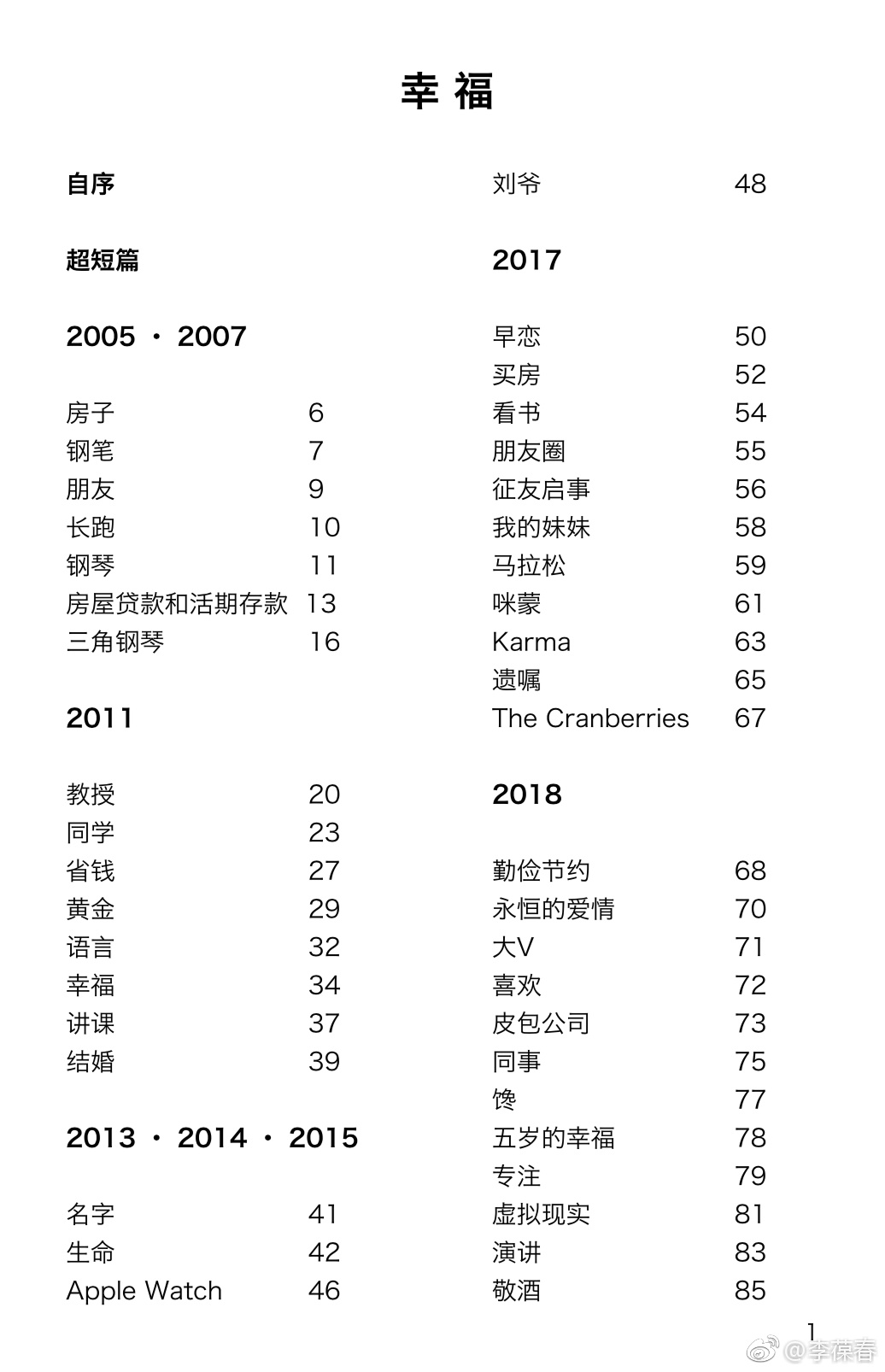 这本《幸福》以这篇《序》作为开篇,我排在了目录之前,开门见山。