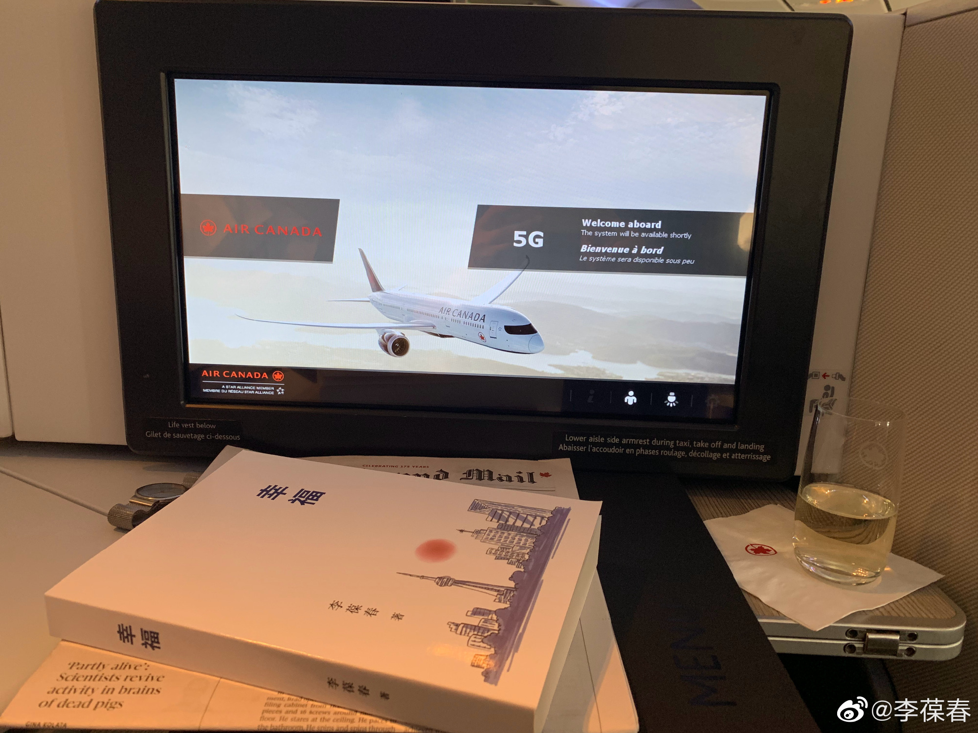 飞往上海的航班,登机时加航给我升到了公务舱——幸福永远是不期而遇。准备好好吃一顿饭,看一场电影,看一会儿书,睡一觉,然后继续准备期末考试题。