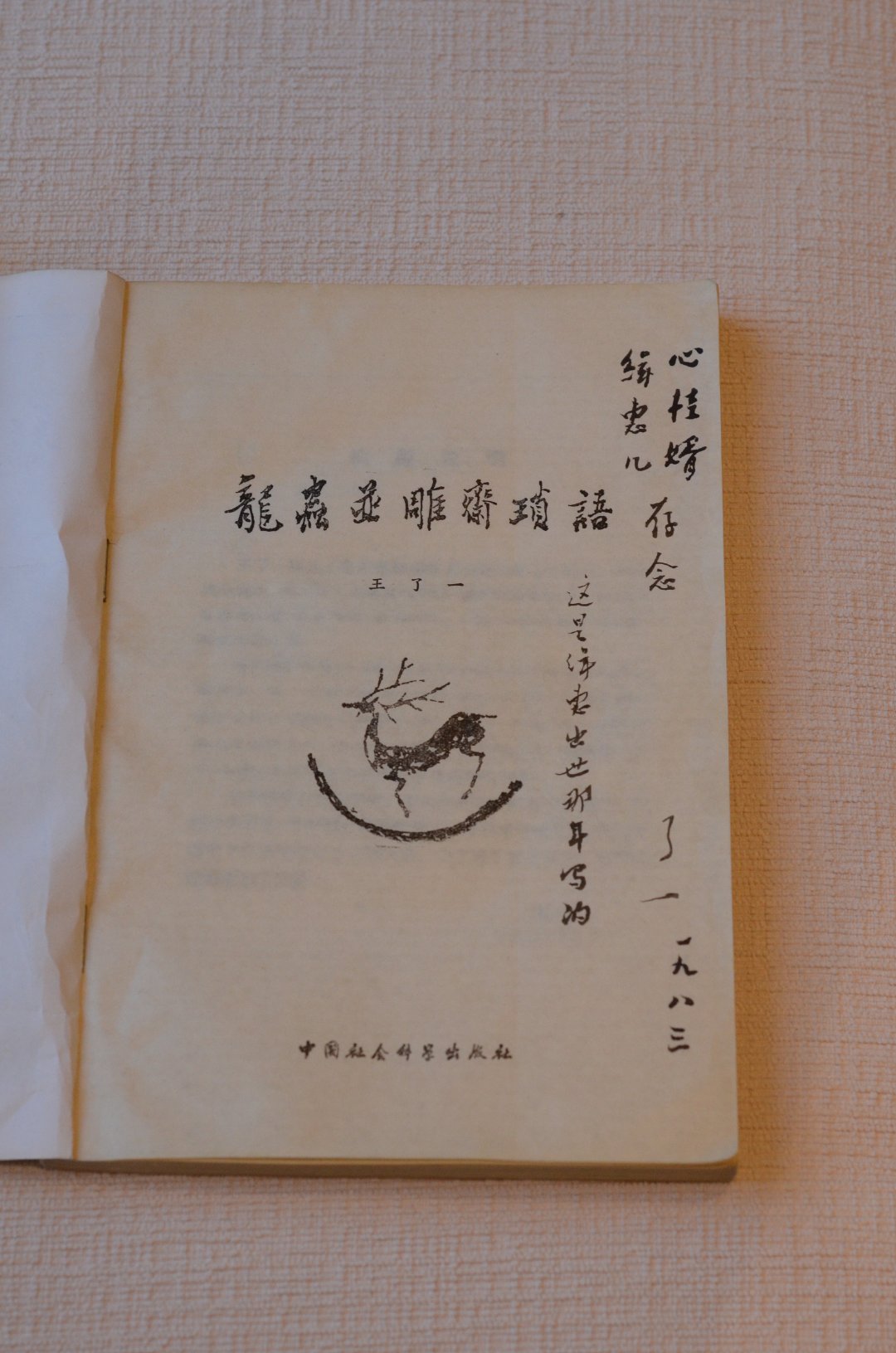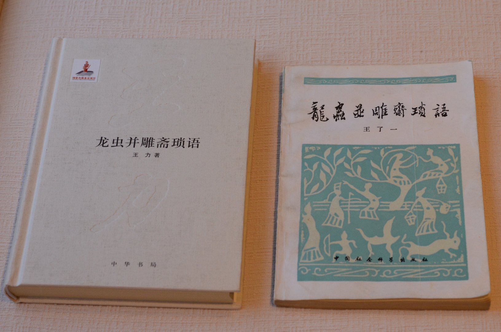 《幸福》的前言里提到的那本外公的《龙虫并雕斋琐语》,我家里有两本。一本是一九八三年由社会科学出版社出版,根据一九四九年的旧本重印的,请当时外公的助手张双棣老师加入了一些注释。还有一本是前几年买的中华书局二〇一五年的版本,硬皮精装,属于《王力全集》之二十三卷。