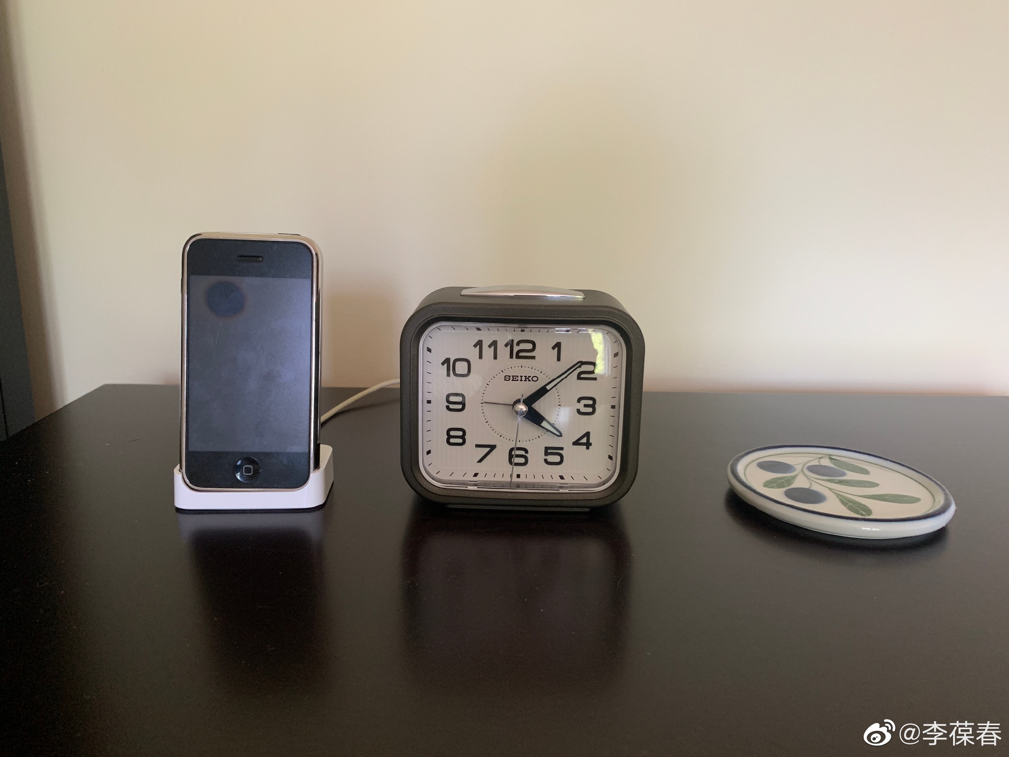 忽然灵机一动,我把十多年前买的第一代 iPhone 找出来充好电,放在当年给它买的 dock 上,专门用做一个音量可以调节的闹钟。在床头柜上再配上一个普通的无声石英钟用来看时间,分工合作,物尽其用,再也用不着手机了。