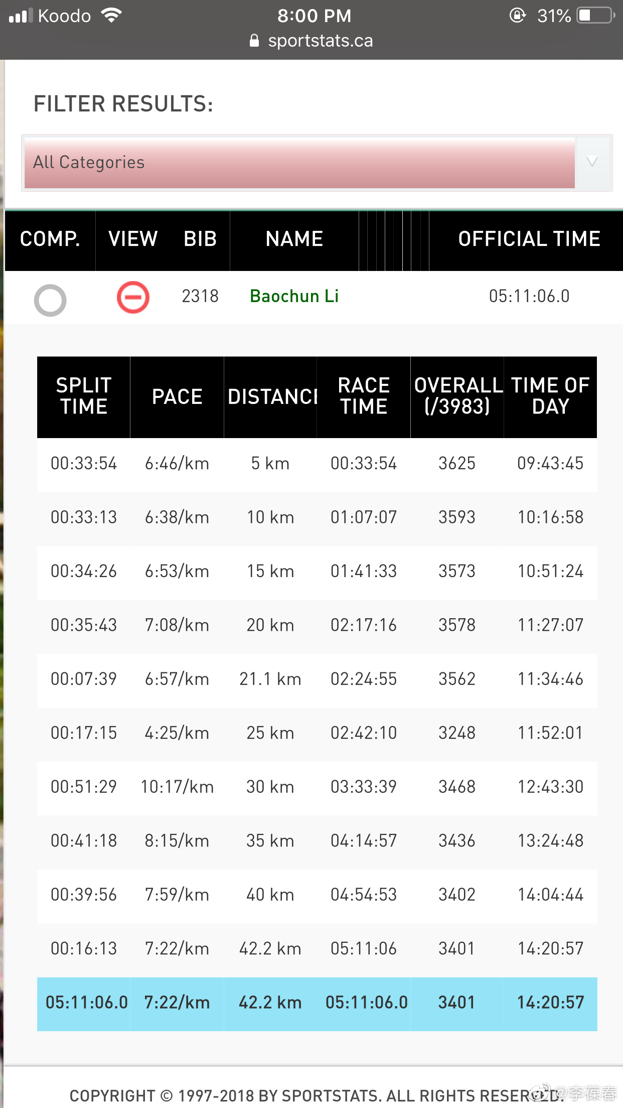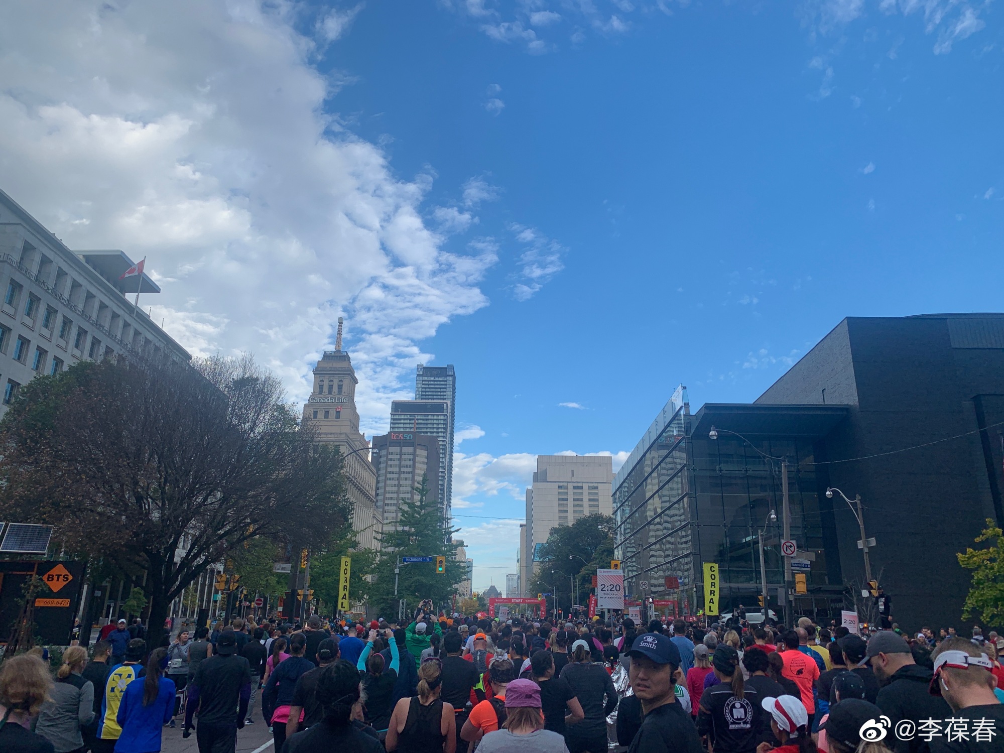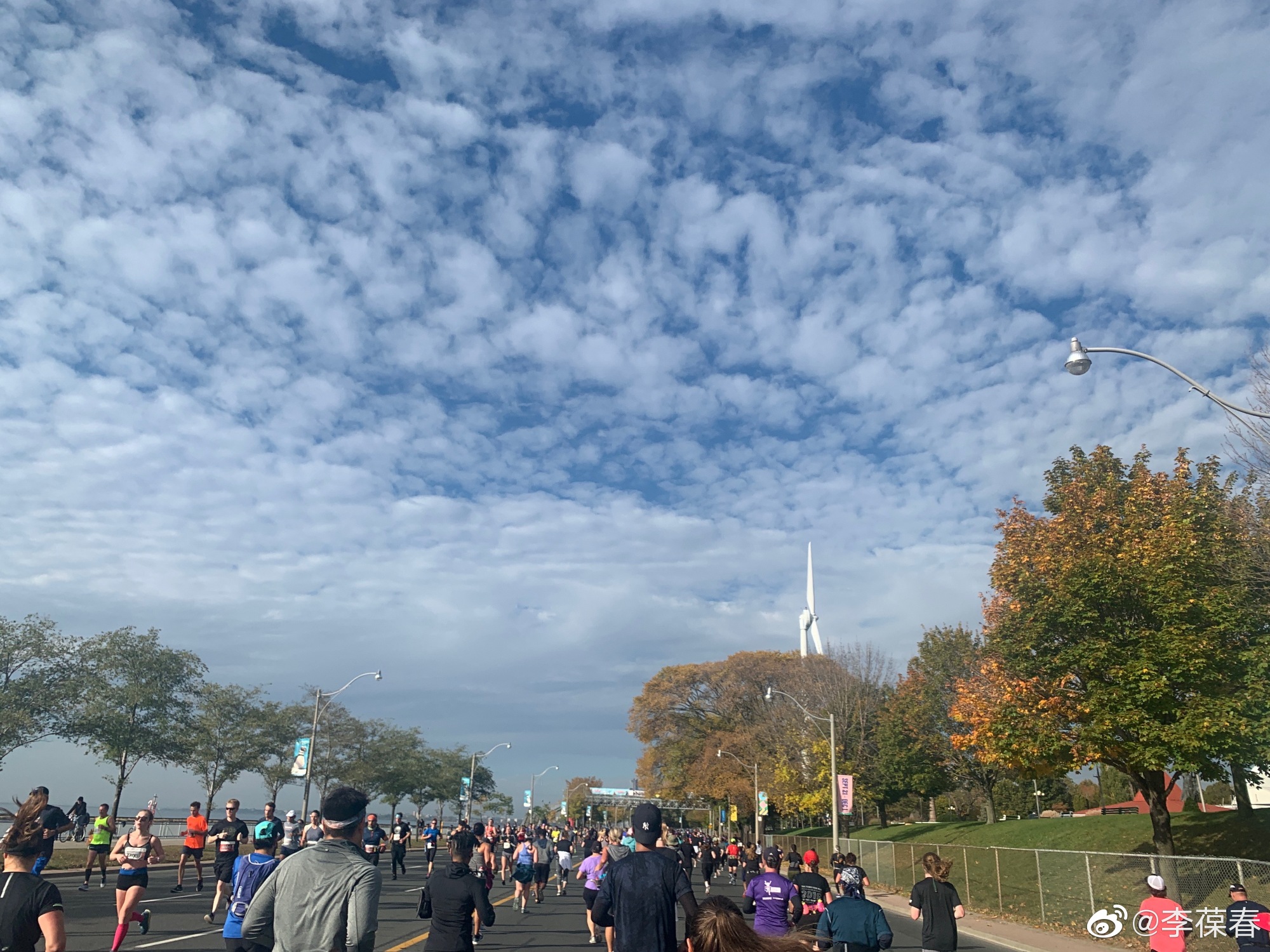 上一次跑马拉松是两年前。去年系里要开会没有跑成,今天如愿以偿,再次成功完成马拉松全程。前三次的成绩越来越差,这次我预计不可能比前年快,微博怎么写都提前想好了,可以和前年一模一样:「一年不如一年」。没想到跑完了竟然比前年还快了三分多钟,全程平均配速从7分27提高到7分22。天气晴朗,太阳照着很暖和,蓝天白云下在安大略湖边跑步,真是一种既痛苦又愉悦的独特体验。