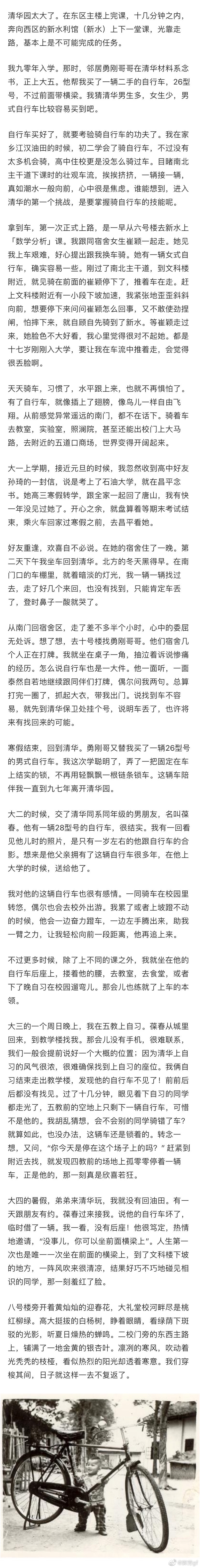#清华记忆# 一段关于清华园里的自行车的回忆