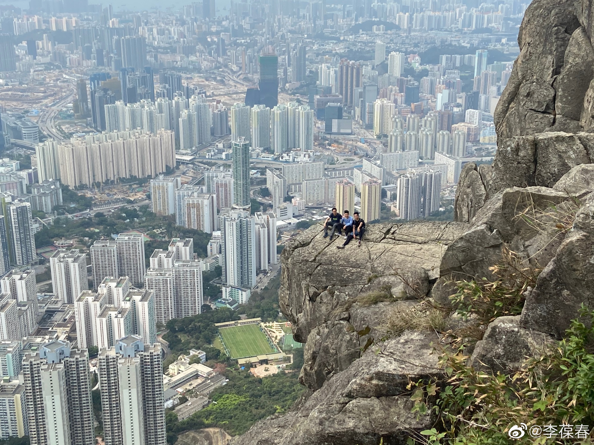 昨天跟香港科技大学的几个学生一起去爬山。这次去爬的是香港飞鹅山的一条著名路线,前半程有一个岔路口,左边简称「高危」,右边简称「崎岖」,都很难对付。后半程需要手脚并用,同去的几个学生体力都很不错,我们一小时左右就爬升了五百米海拔到达山顶。这条路线之所以有吸引力,是因为它路过了著名的飞鹅山自杀崖。从这里可以远眺整个维多利亚港。可惜我恐高,绝对不敢过去照相。