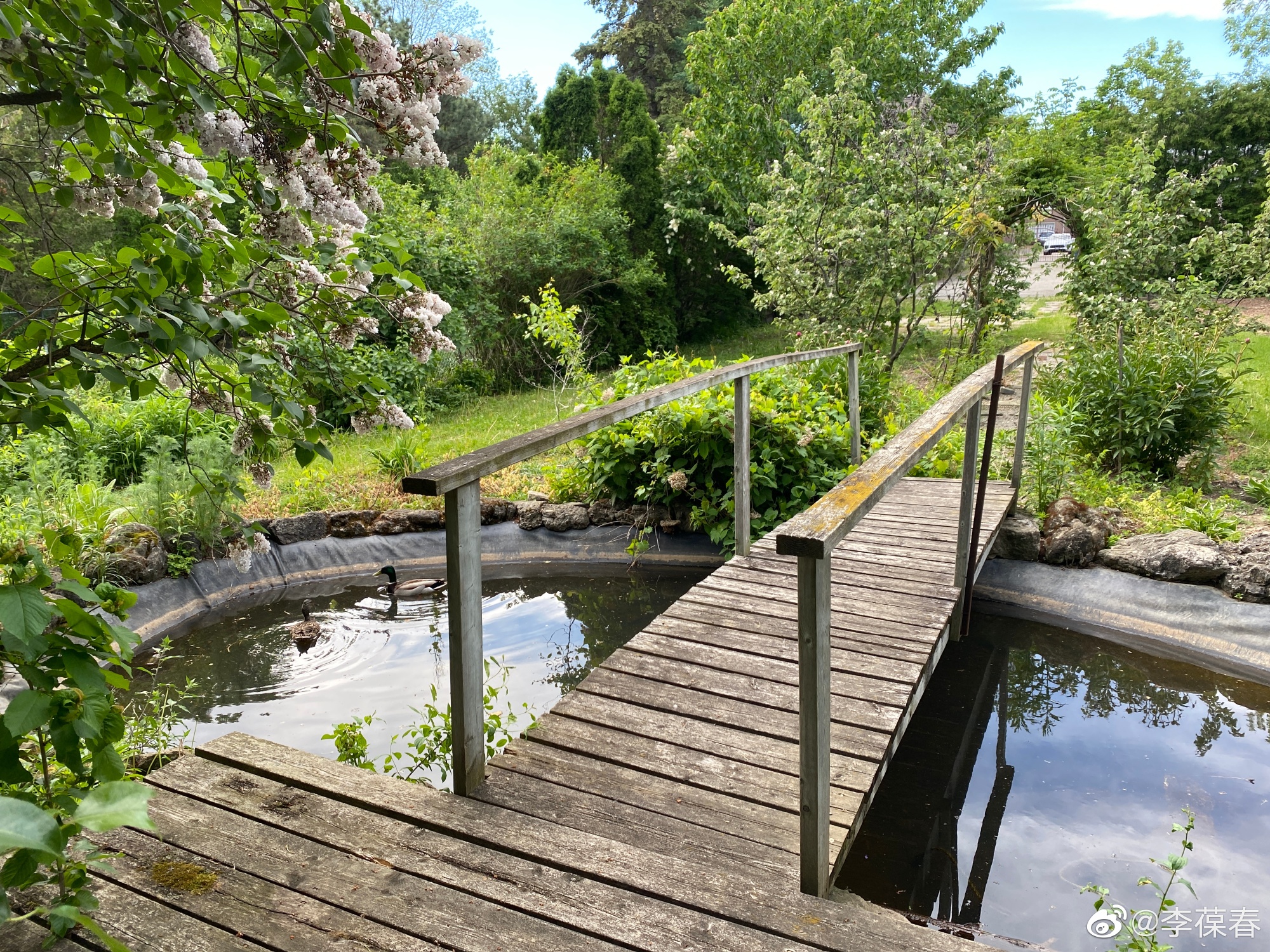 前一任房主在这个地方住了一辈子,三个孩子都早已长大成人。房主以前园艺一定很在行,后院有不少果树和各式花卉,前院也种了十七世纪的「比特币」——郁金香,令人目不暇接。更为稀奇的是后院有一个小池塘,池塘上跨着一个木制的小桥,池塘中不时会看到两只野鸭闲庭信步。