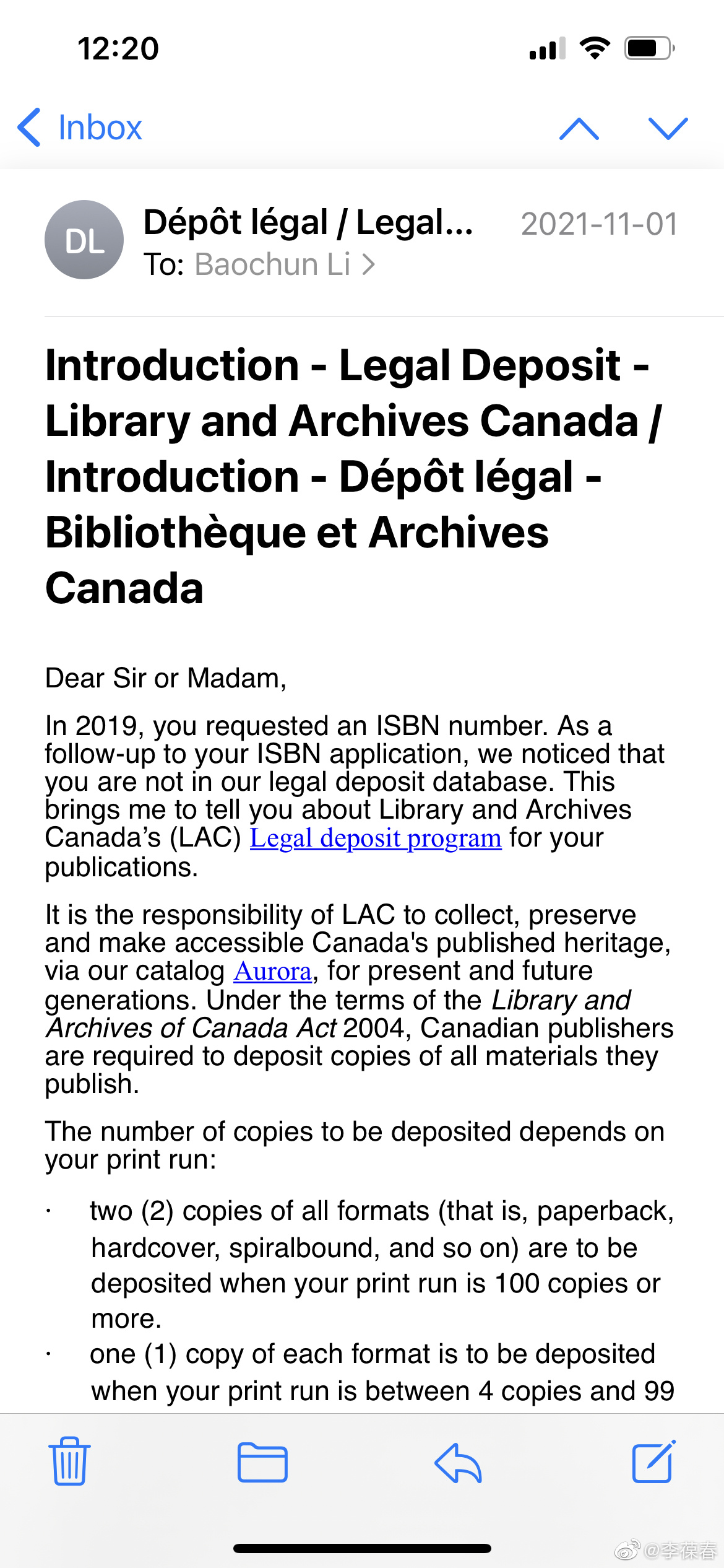 加拿大图书档案馆(Library and Archives Canada)最近联系我,让我寄两本纸质版《幸福》给他们收藏。他们的目标是每一部有加拿大出版书号的书,都要至少收藏一本。