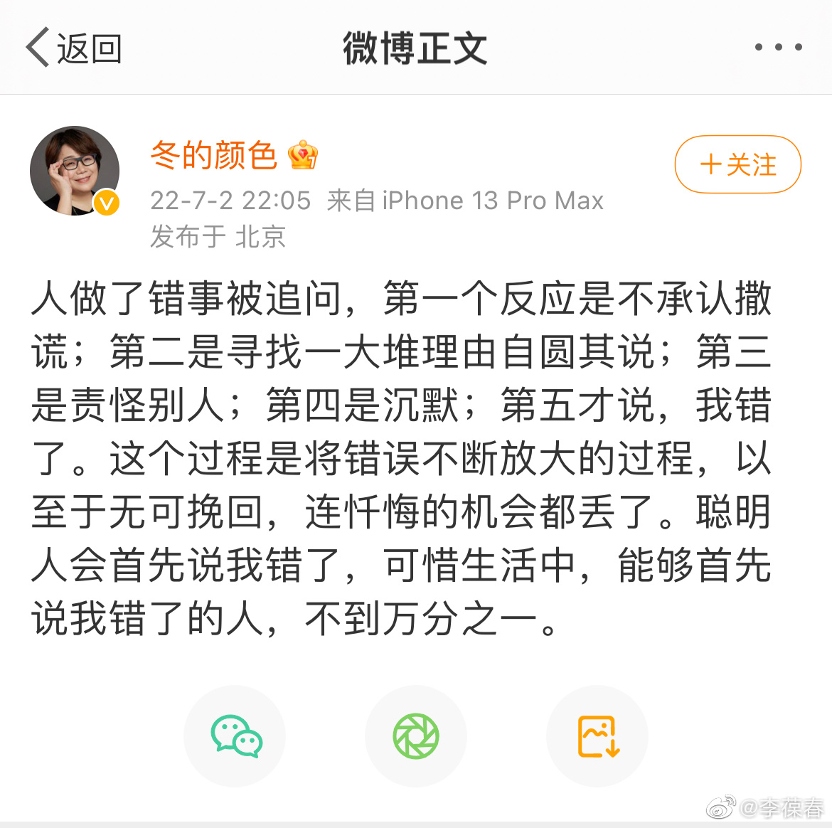 看到这条微博,我首先想到的是几十年前《小学生守则》里的第十条:「诚实勇敢,不说谎话,有错就改。」