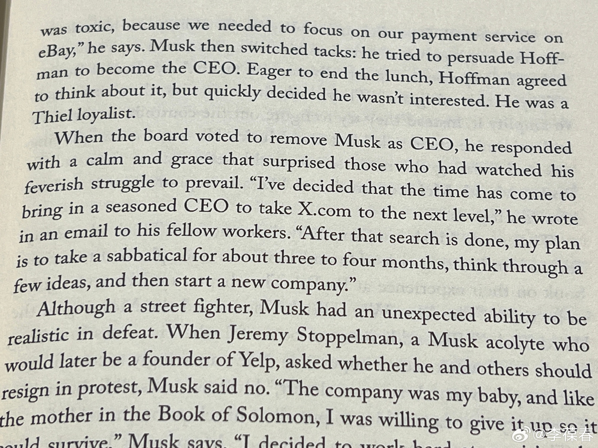正在看 Water Issacson 的《马斯克传》。读到马斯克早在2000年,就希望把 PayPal.com 改名为 X.com,并做成一个像今天的微信一样的「super app」,包罗万象,无所不能。可惜公司领导层没有听他的建议,他也没有当成CEO。